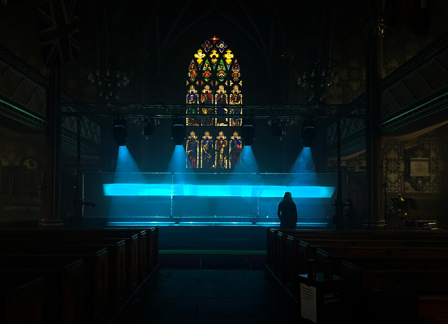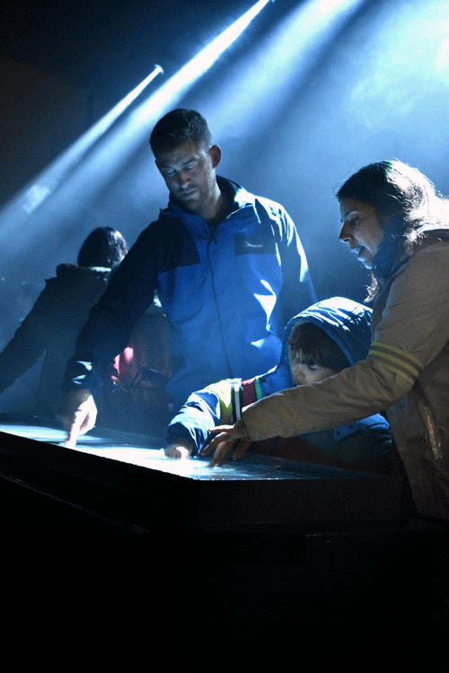 As viewers touch the water it projects moving light across the space, synchronised with an ambient soundtrack.